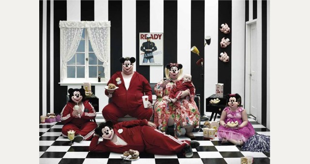 Pitched somewhere between comedy and tragedy, this vivid photographic tableau and accompanying texts paint a picture of a confused humanity, blindly groping in the darkness, obsessed with fame and guided only by an absolute desire for generalised happiness.