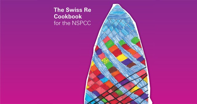 The Swiss Re Cookbook for the NSPCC, edited by Tee Dobinson (aka ‘The Gherkin Guru’), contains recipes written by ChildLine founder Esther Rantzen, broadcaster and journalist Fiona Bruce, and Arnaud Stevens, Executive Head Chef of the Searcys restaurant located at the top of The Gherkin and Swiss Re staff. Within the book, each recipe has its own interpretation of the building, painted, drawn or collaged by children from William Davis Primary School in Tower Hamlets.